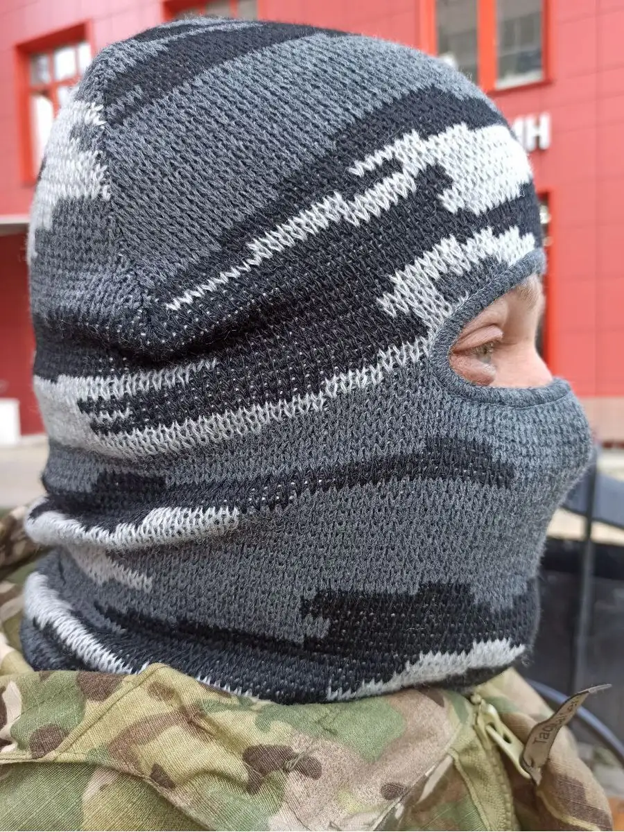 Универсальная шапка Лыжник КМФ. Головной убор цвета серый камуфляж, полностью закрывает голову и шею, оставляя открытыми только глаза. Балаклава тактическая создана для защиты лица от обморожения в условиях низких температур и надежной ветрозащиты. Материал полушерсть, двойной вязки. Вязаная шапка по низу оформлена широкой резинкой. Приятная на ощупь, не раздражает кожу лица и шеи. Размер универсальный. Подходит мужчинам и женщинам, унисекс. Балаклава обладает высокими теплосберегающими свойствами, заменяет шапку и шарф-снуд. Балаклава трансформер может заворачиваться в шапку бини с широким отворотом. Спортивная маска шлем тактический подойдет для занятия спортом альпинизм, восхождение на гору, под шлем или каску (подшлемник). Защитный аксессуар надевают для активностей в холодное время года: прогулок, езды на снегоходе, катании на сноуборде, лыжах и коньках. А также для зимней рыбалки и охоты, туризма. Шапка балаклава демик - зимняя мужская универсальная, комфортна под военным армейским шлемом или каской. Шапку используют силовые структуры при спецоперациях.