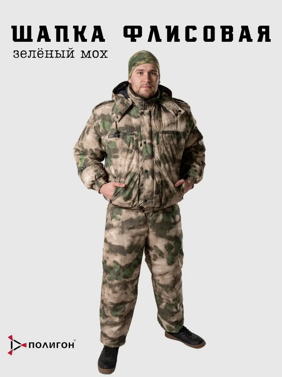 Шапка двухслойная, мох, флис - интернет магазин Полигон