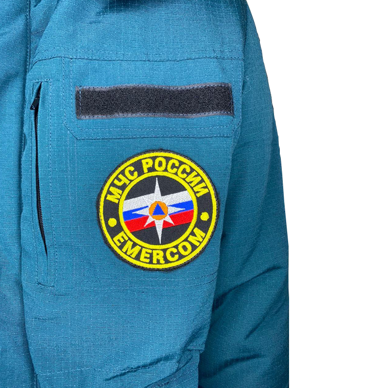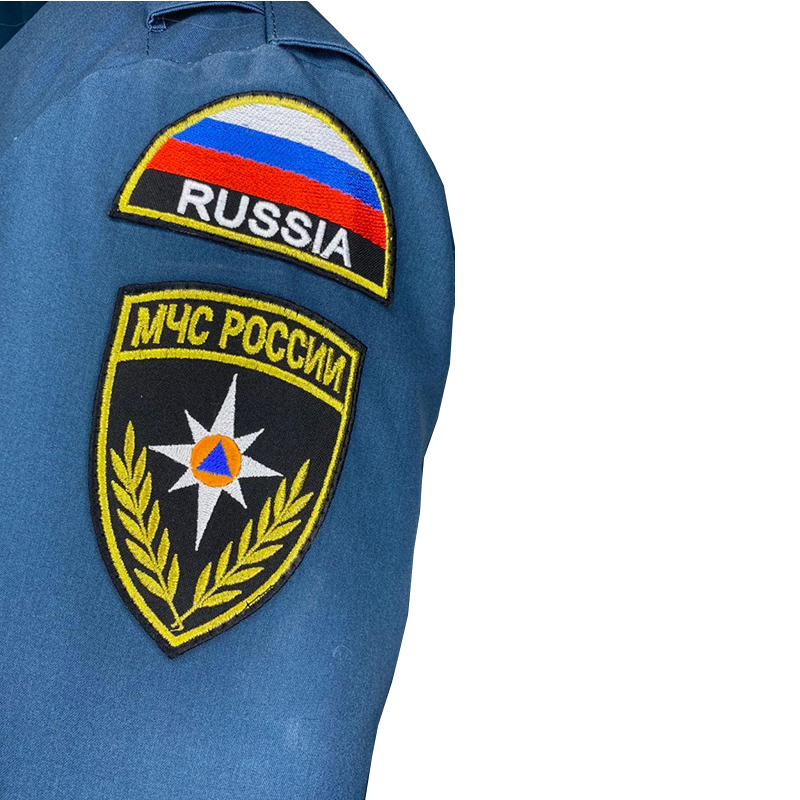 На груди и левом рукаве пришите шевроны МЧС.