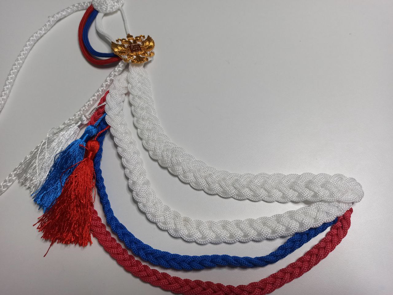 Аксельбант ДМБ цветной "кисти", белый, синий, красный - интернет магазин Полигон