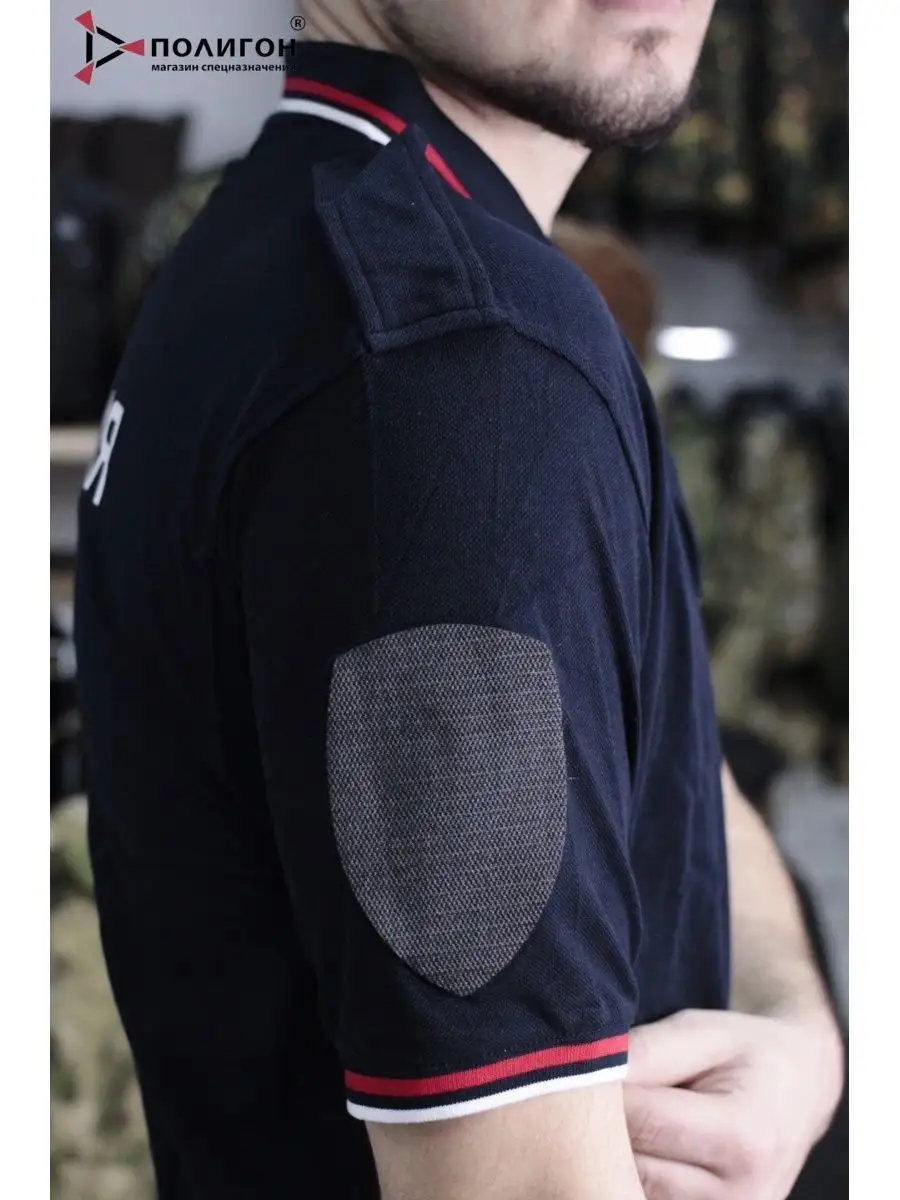 Поло Полиция, короткий рукав, с фальшпогонами, цвет черный, хлопок - интернет магазин Полигон
