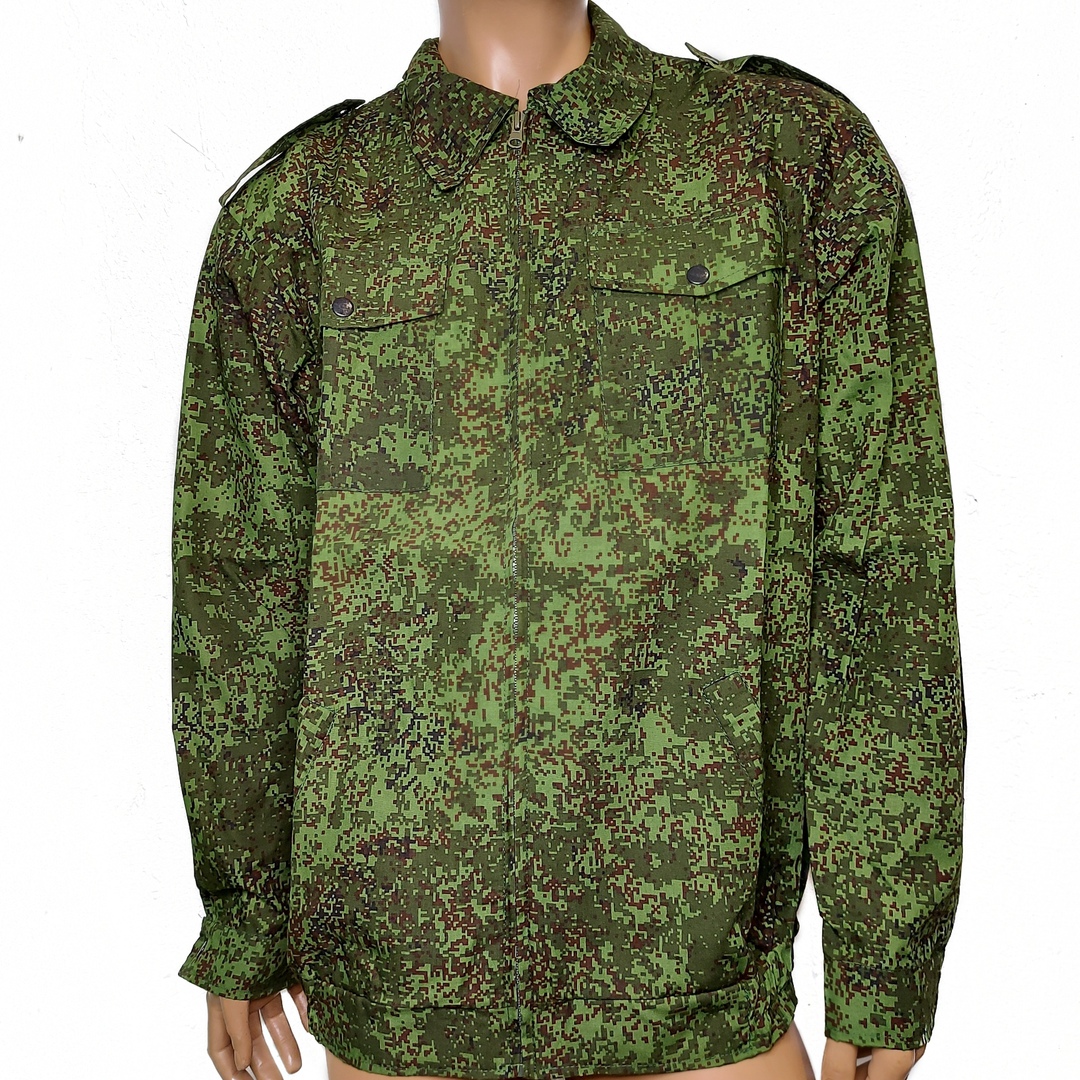 Китель застегивается на молнию, рубашечный воротник типа "акула", плотные манжеты регулируются липучками, спереди два кармана на липучках и врезные карманы по бокам на молнии. Рукава усилены на локтях.