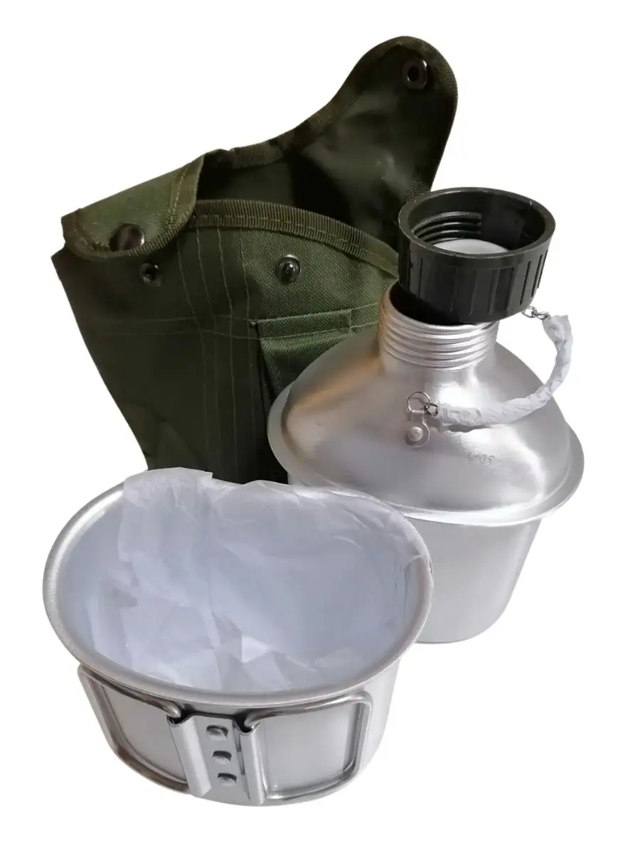 Фляга с котелком в чехле, оливковый, алюминий - интернет магазин Полигон