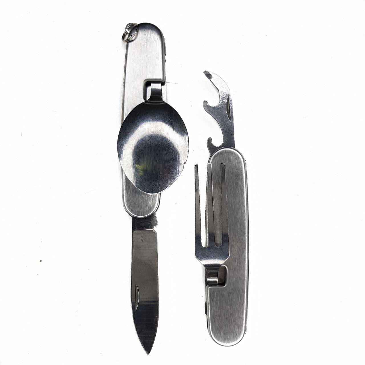 Набор туриста 4в1: нож, вилка, ложка, открывалка, серебристый